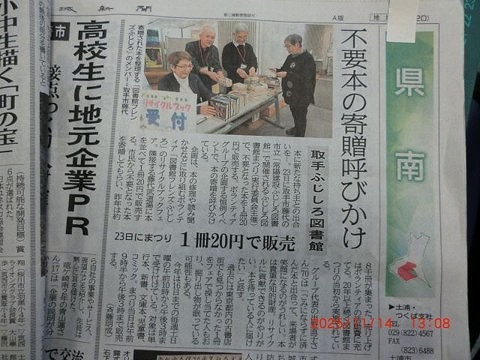 10月24日に茨城新聞による「リサイクルブックフェア」のインタビューが行われましたが、11月13日付けの新聞に載りました。