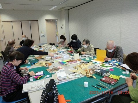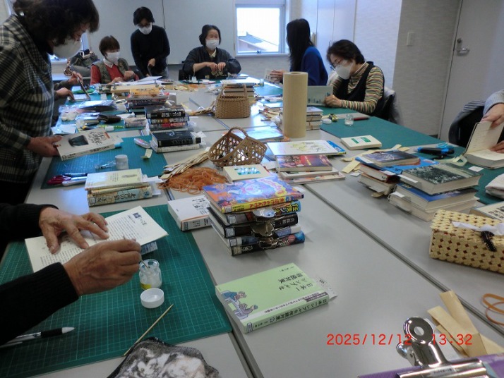 今日は部員12名の他、1名の方が本の修理を体験したいとの事で参加してくださいました。