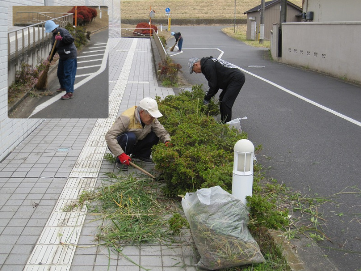 | 2024.11.12 | クリーン作戦 | 今日の参加者は18名、図書館員3名を加え、総勢21名で した。 シルバー人材による草刈りが行われた直後だったため、 主だった場所は刈り取られており、本日の草刈りは約30分 で終了しました。 |